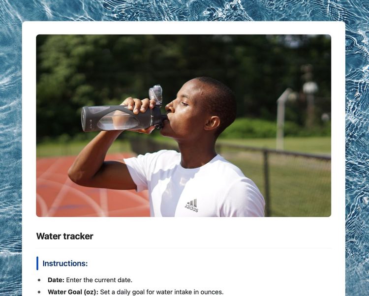 Discover better health with our easy-to-use water intake template. Track hydration effortlessly and enhance your wellbeing today.